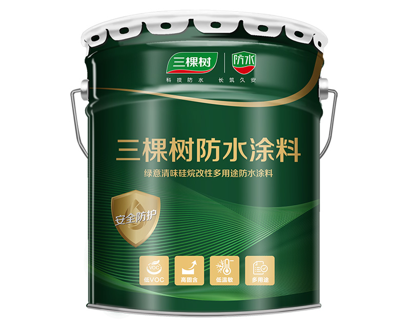 三棵树SGW9010绿意清味硅烷改性多用途防水涂料是一种无污染、无刺激性的环保型防水材料,以硅烷改性树脂为基础聚合物,配以助剂、填充剂、催化剂等制备而成。通过与空气中的湿气反应固化形成连续、无接缝的高分子弹性防水膜。